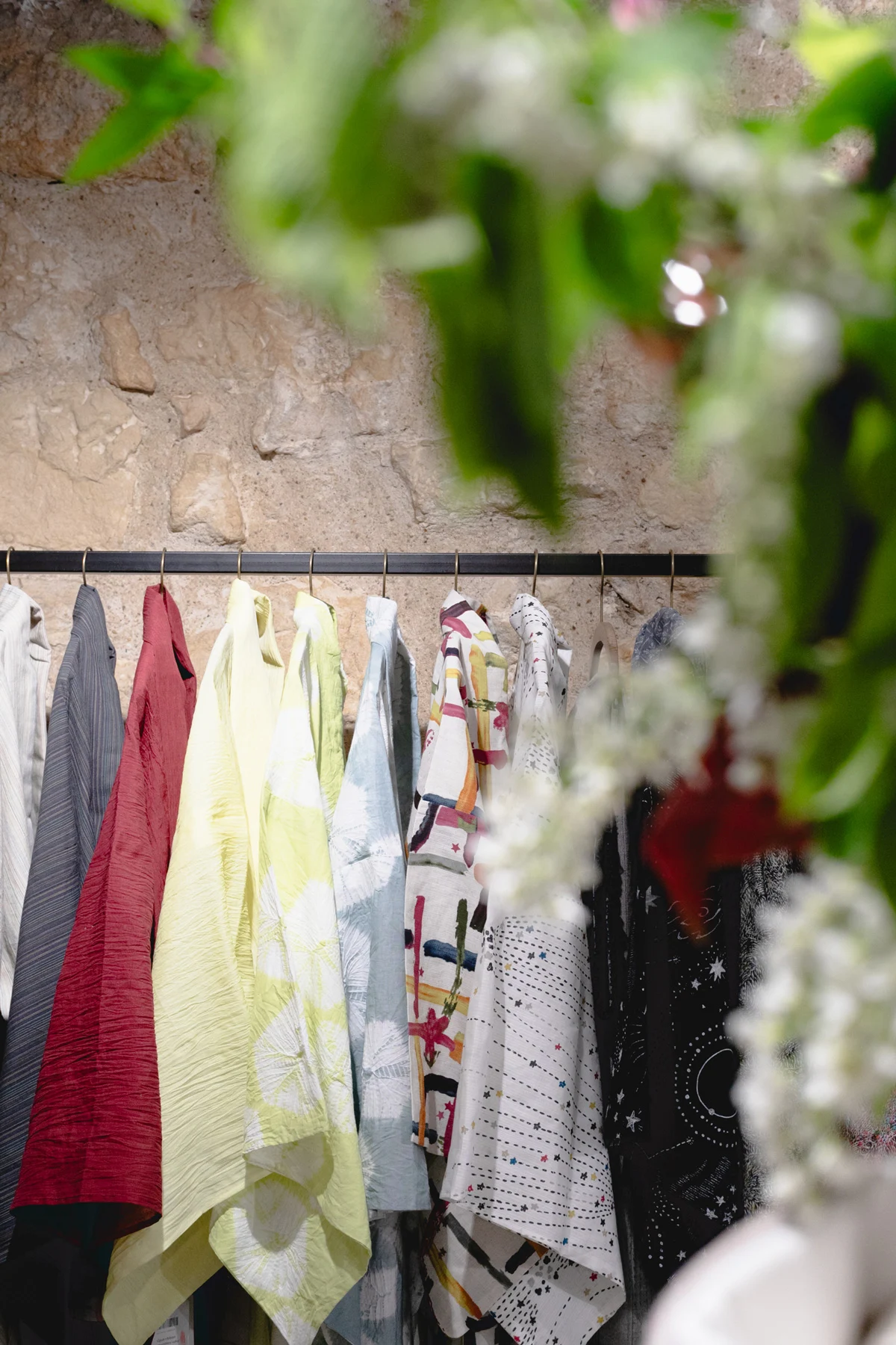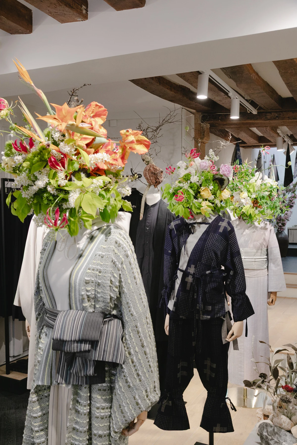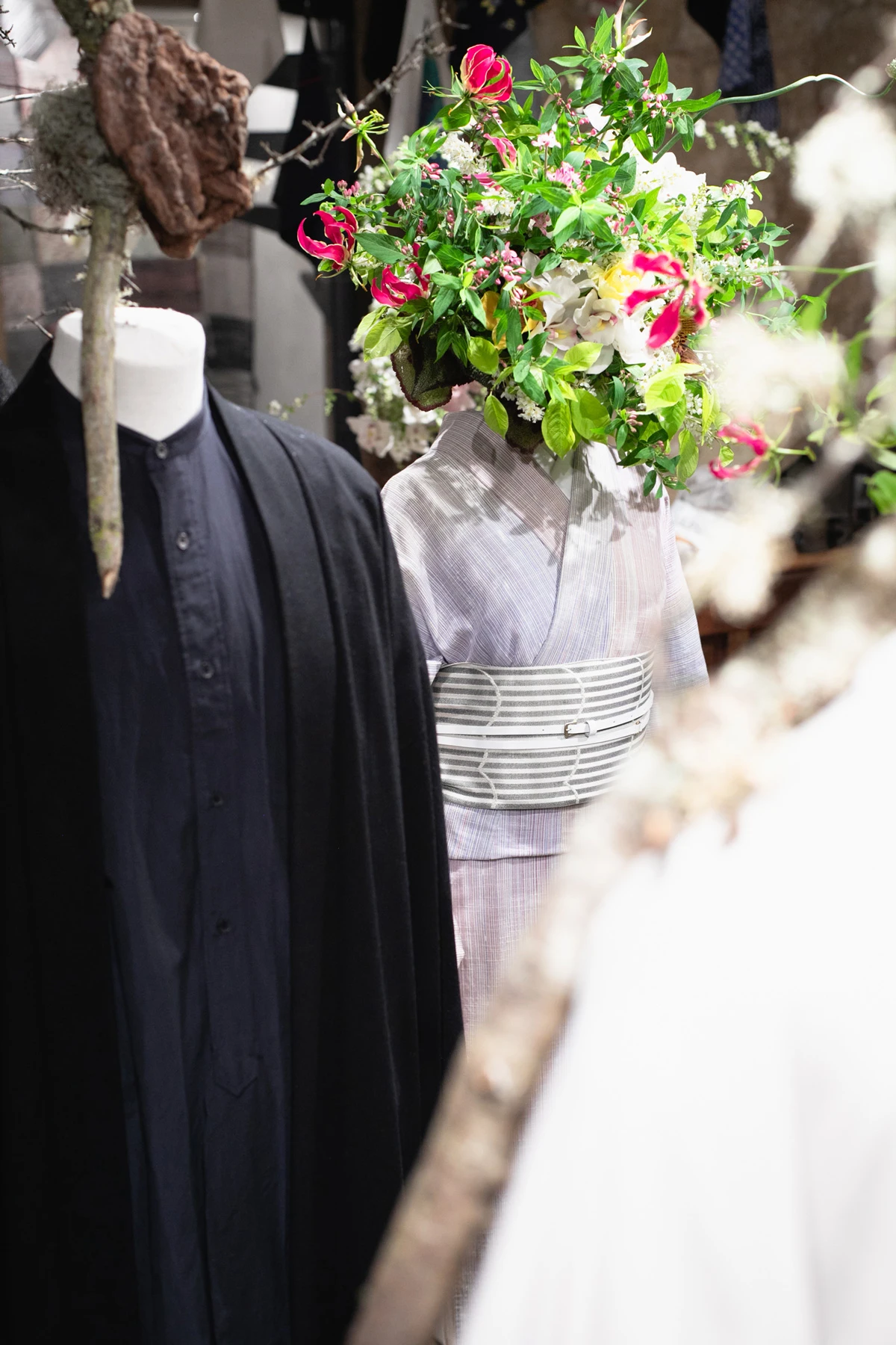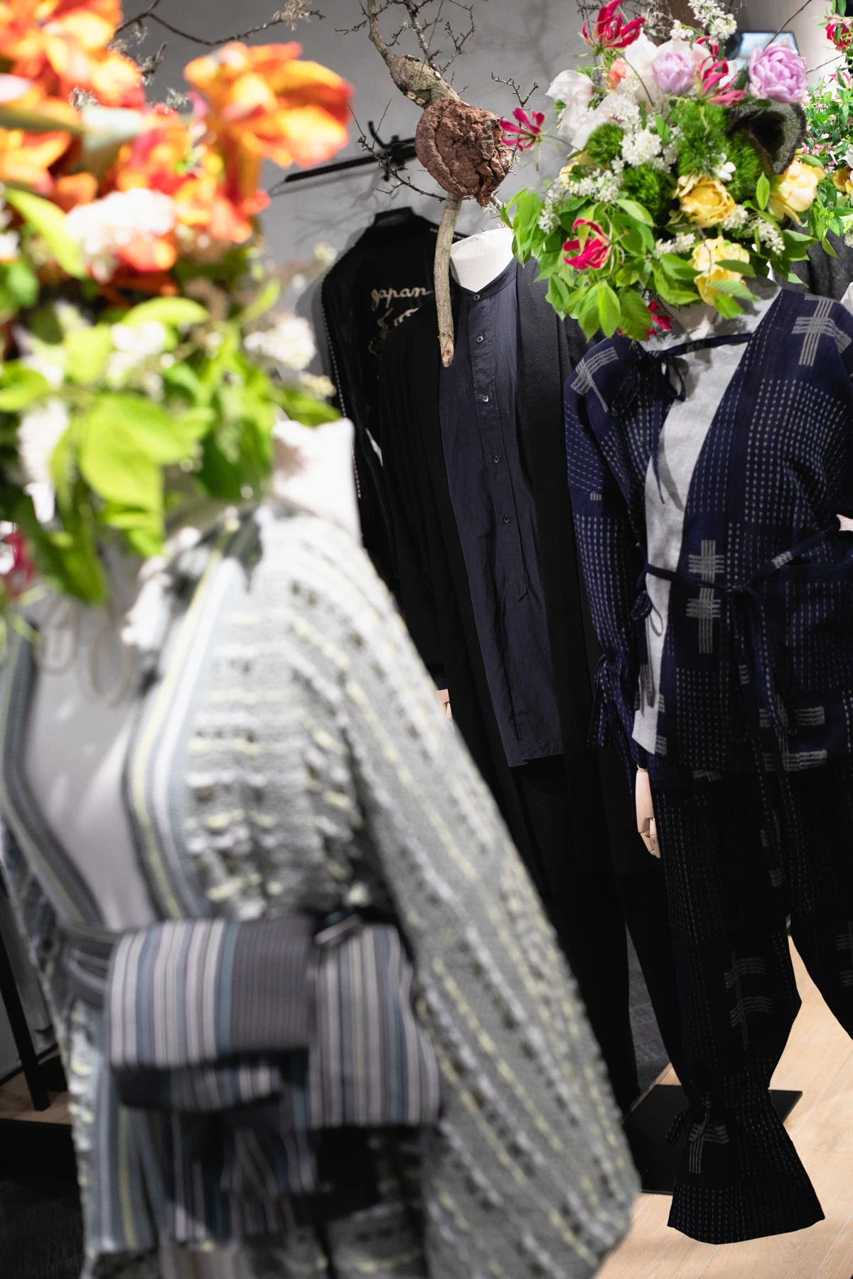 ニットやタオルなど異素材を用いた羽織やきもの、きもの生地で仕立てたお花、装飾を施した作務衣やもんぺ、パリ限定アイテムなど、ライフスタイルに取り入れていただきやすいアイテムが揃います。