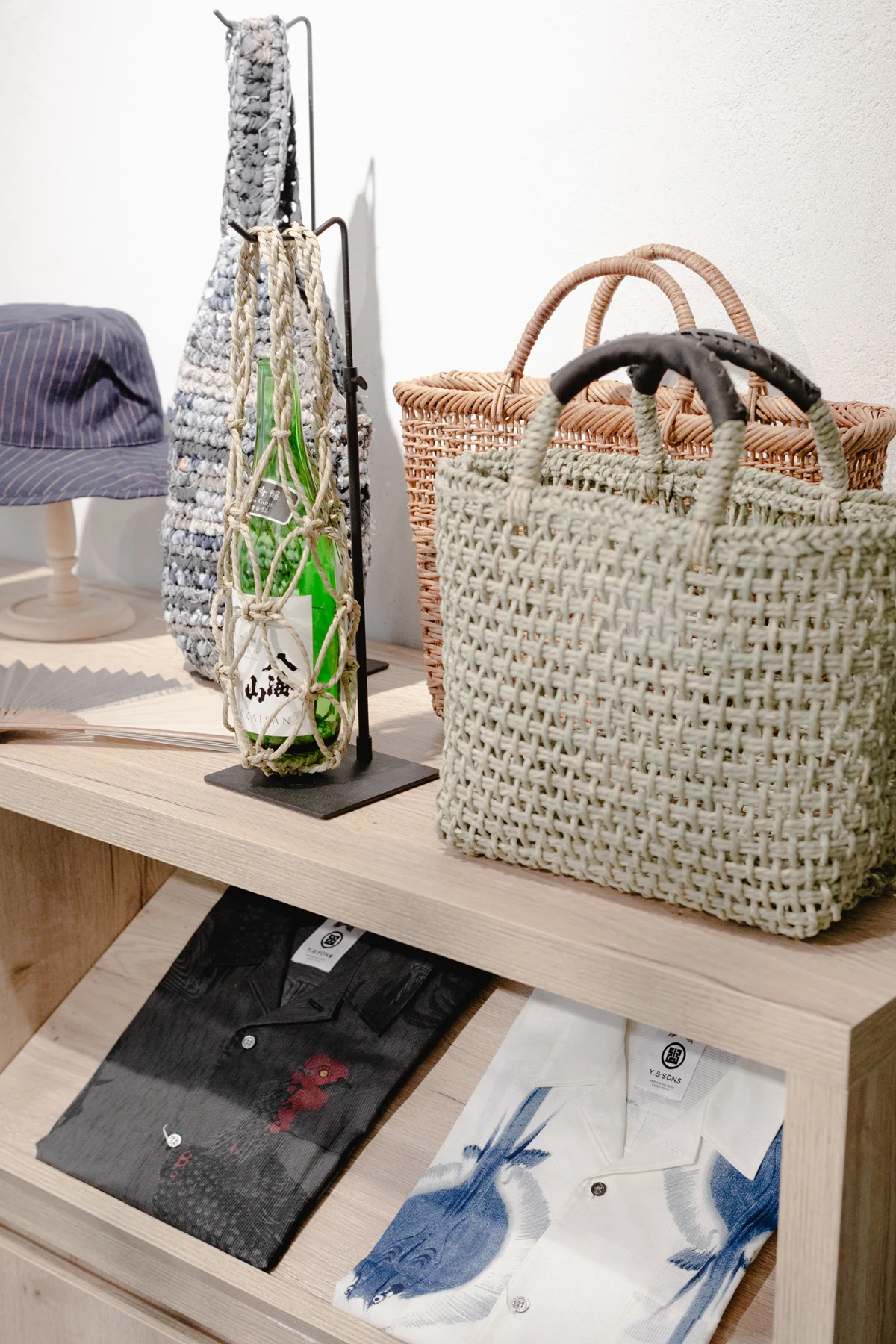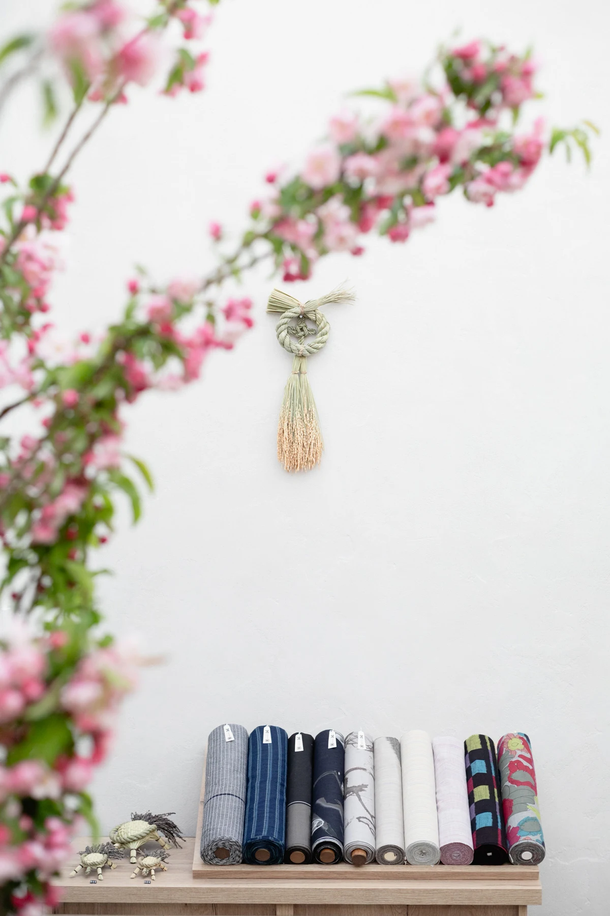 また、上甲清さんのしめ縄や藁細工、須波亨商店のいかご、大沼秀則さんに別注したこけしなど、きものの枠を超えて暮らしを彩るアイテムも揃います。