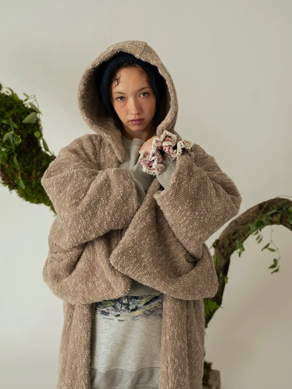 an/eddyは、ニットアーティスト蓮沼千紘氏にしか生み出せない作品で、注がれた時間の豊かさは、見れば見るほど想像が広がります。ニットは編み目の表情が際立ち、糸選びに至るまで作品に込められた物語や情景を感じさせます。