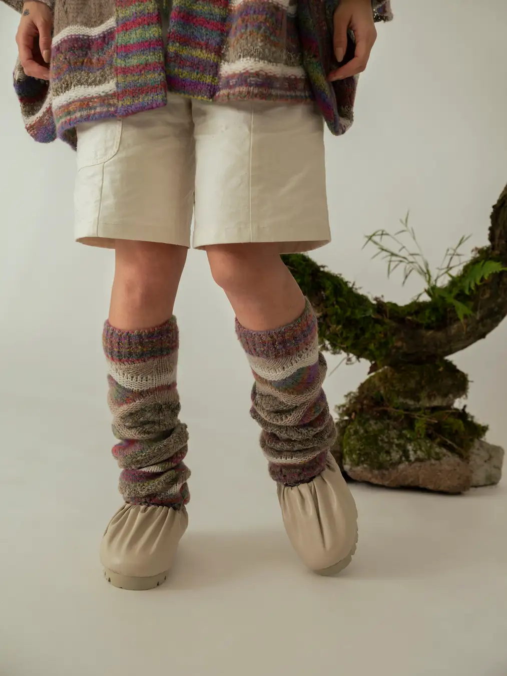 細やかな柄ゆえ、帽子やミトンなどの小物に用いられることが多いフェアアイルニットですが、今回はアームウォーマーとレッグウォーマーの兼用アイテムも展開します。