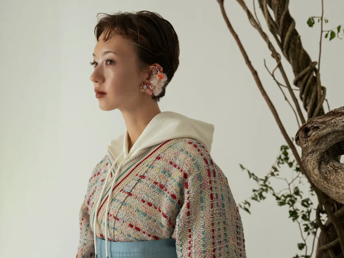 いつもの自分から新しい自分に出会う瞬間に感じるワクワクや発見、驚きを、自由なきもののスタイリングで提案しています。