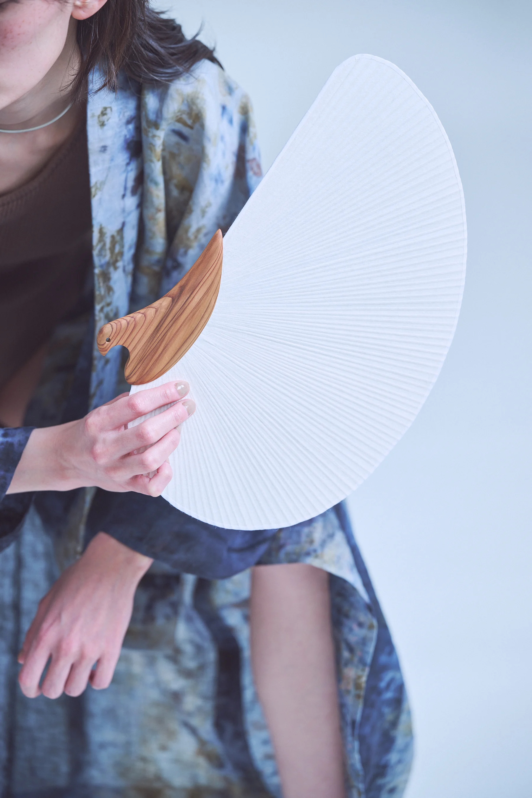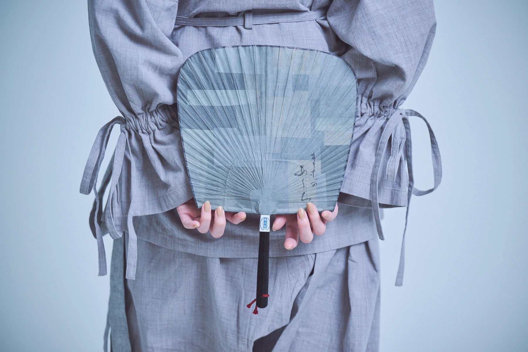 障子にも使われている薄手の和紙を用い、やわらかく通る光が、素材そのものの美しさを引き立てています。あおぐだけでなく、飾ることで空間に涼やかな趣とやすらぎをもたらします。