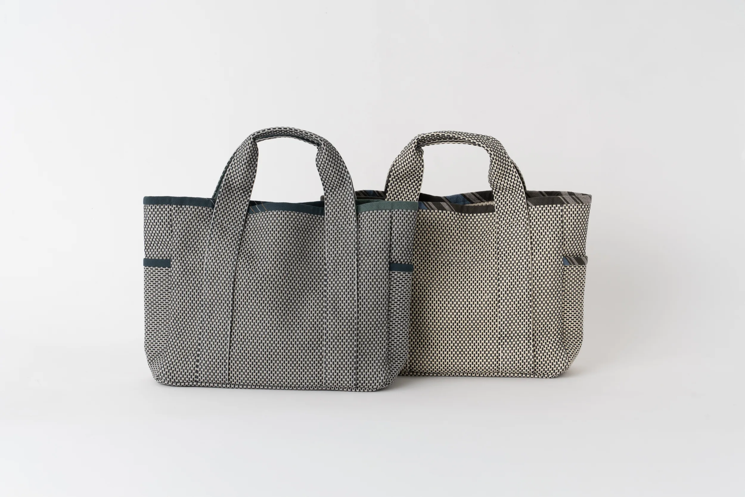 新潟県・片貝の紺仁染織工房にて染めた刺し子バッグ。軽くて丈夫、使い込むほどに馴染む風合いが魅力です。A4サイズ対応で、両サイドにポケットを備えた実用的なデザイン。縁のパイピングには、きものやまとオリジナルの片貝木綿を使用しています。