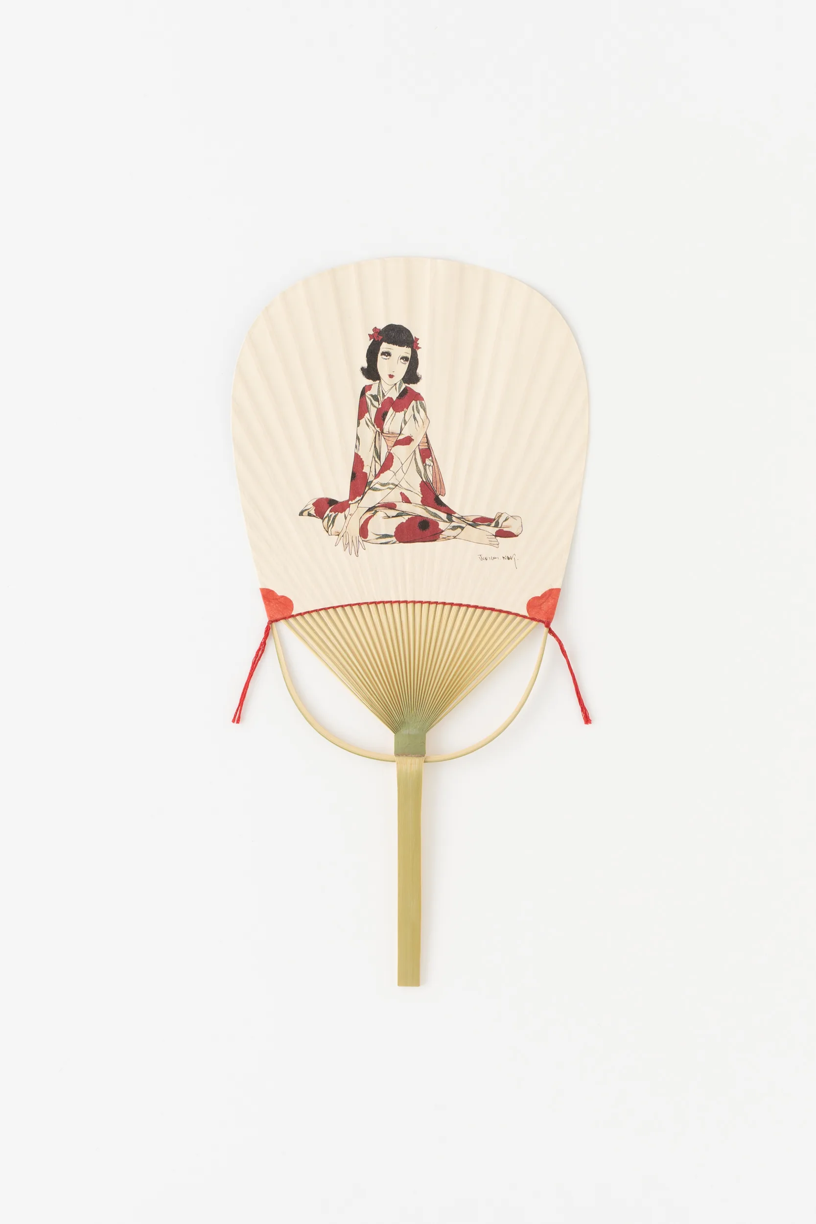 香川県丸亀市周辺で受け継がれる伝統工芸「丸亀うちわ」。職人の手により一点ずつ丁寧に作られています。ゆかたのモチーフとなったイラスト「赤い花」の女の子と、「ひまわり」のデザインで制作しました。両面で異なる表情を楽しめるデザインと、サイドに揺れる紐がポイントです。オリジナルパッケージで展開します。