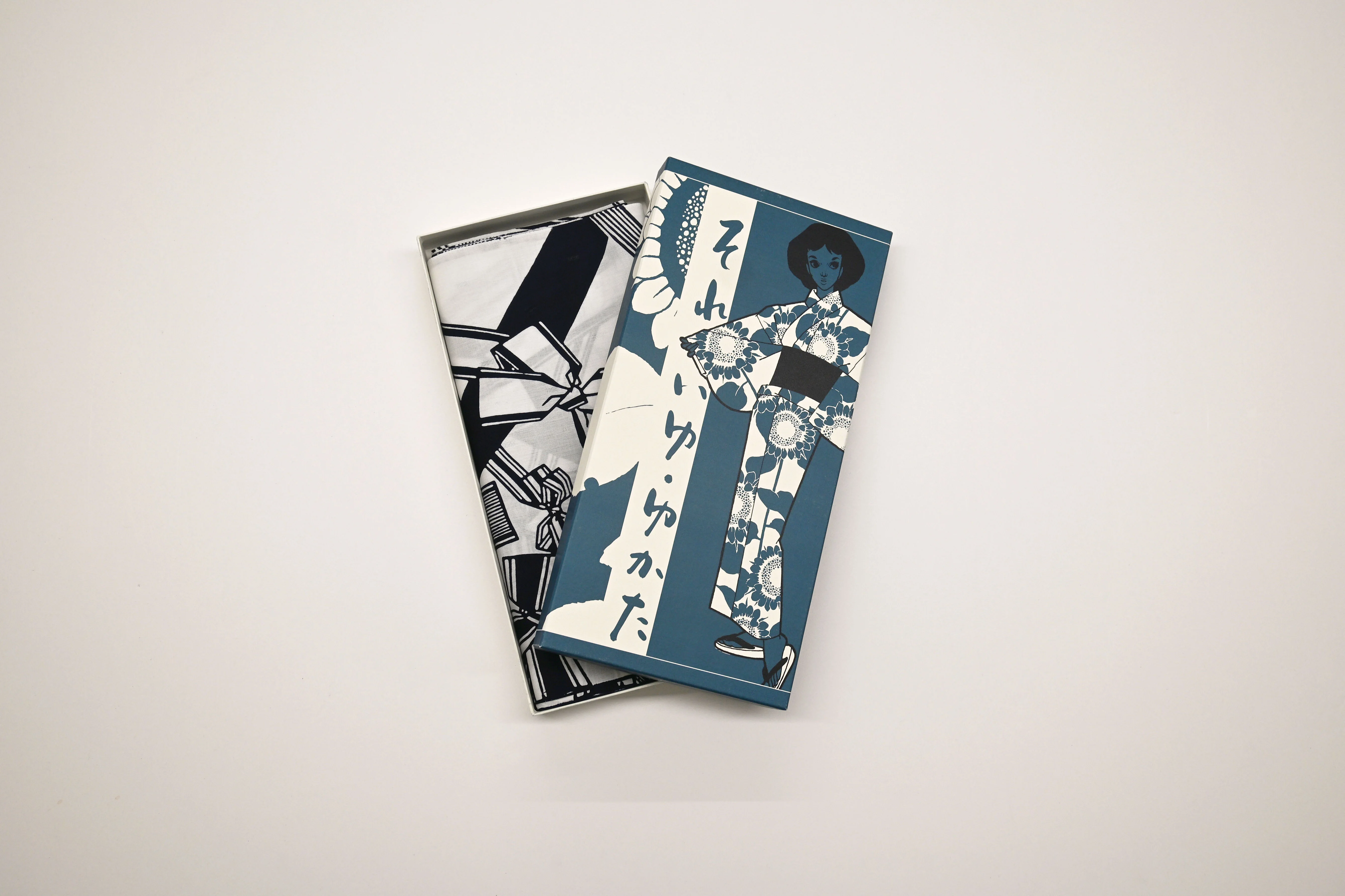 昭和30年代に人気を博した「それいゆゆかた」を、当時と同様の注染技法で復刻。にじみやぼかしを活かした、やわらかく優しい風合いが特徴です。発売当時のつつみ紙から再現したオリジナルボックス付き。