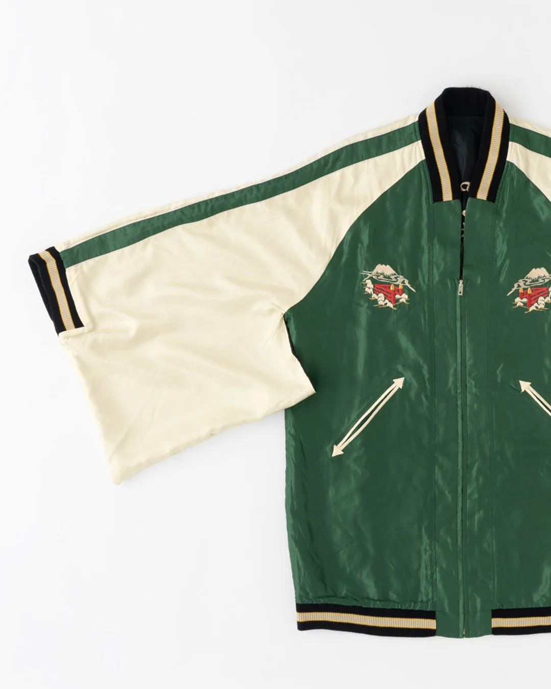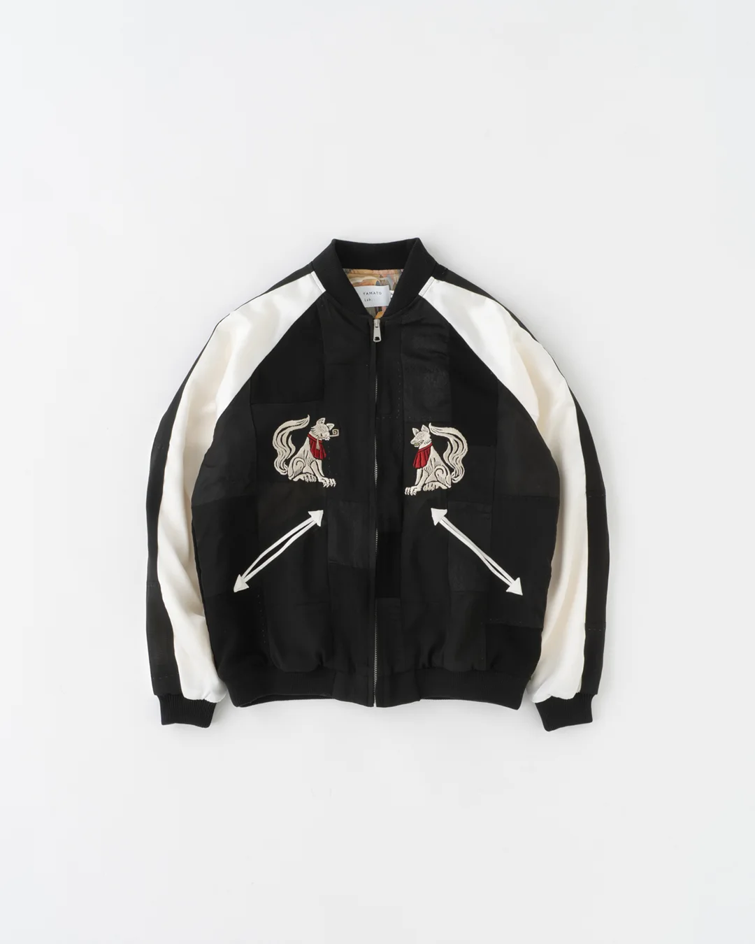 本イベントの開催を記念して制作した、すべて 1 点ものの数量限定スペシャルアイテム。子供の健やかな成長を願い端切れを縫い繋ぐ「百徳着物」に着想を得て、ヴィンテージキモノをパッチワークのように継ぎ接ぎした「ジャケット」に、オリジナルの刺繍を施した特別なシリーズ。また今回は裏勝に加え「スカジャンキモノ」シリーズ初となるキルティング仕様となっています。