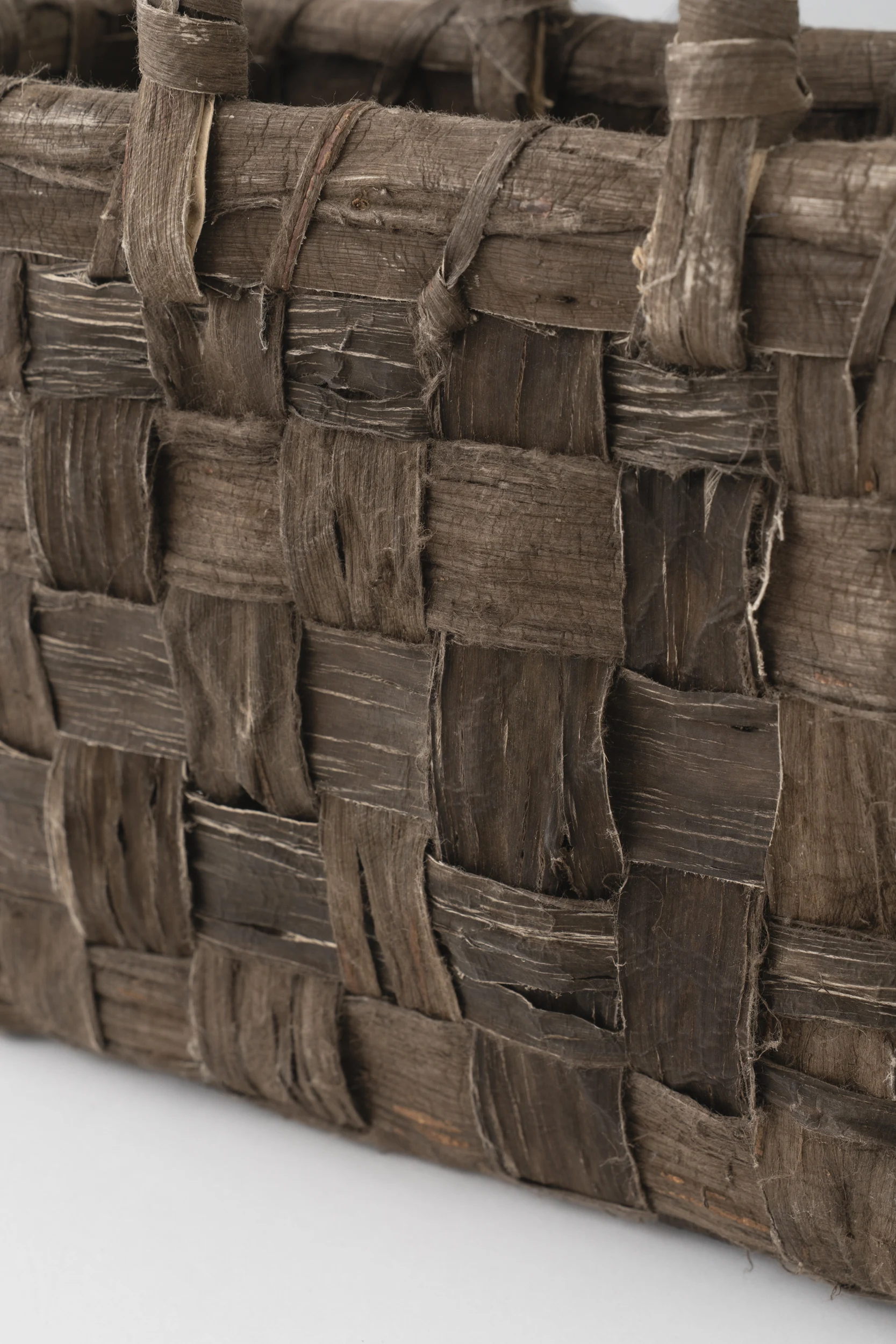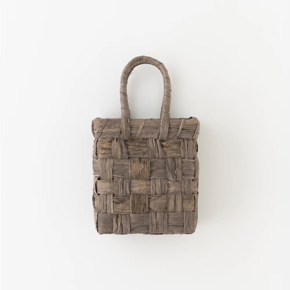 また、すべてのバッグにはシリアル番号が刻印された真鍮のタグが付属し、ひとつひとつ異なる表情を持つプロダクトであることを示すディテールのひとつです。胡桃や山葡萄の樹皮で作られる籠バッグとは異なる、軽やかでしなやかな手触りも特徴で、軽量でありながら耐久性にも優れ、日常使いにも適しています。