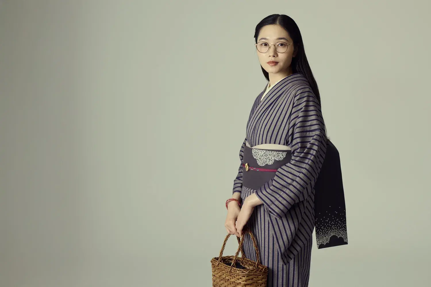 久留米絣は、「筑後川」の豊富な水に育まれた福岡県筑後地方で生まれ、約200年もの歴史を持つ木綿の着物です。ときは江戸時代、1800年頃、久留米城下に住む井上 伝という当時十二歳の少女のひらめきから久留米絣は生まれたとされています。井上 伝は、幼い頃から織り物をはじめたこともあり、この頃すでに城下町で上質な織物を制作する腕があったといわれています。誕生のきっかけは自分の着ていた衣服にできた白い斑点。糸を解き、考え、糸束を括り防染する方法『括り』技法を発明したことで、久留米絣の初めての柄紋様が生み出されました。絣で表現される文様は、精微な作業ながらわずかな輪郭の「ずれ」が「ぼかし・にじみ」という素朴な味を引き出し、人のぬくもりを感じさせてくれます。
