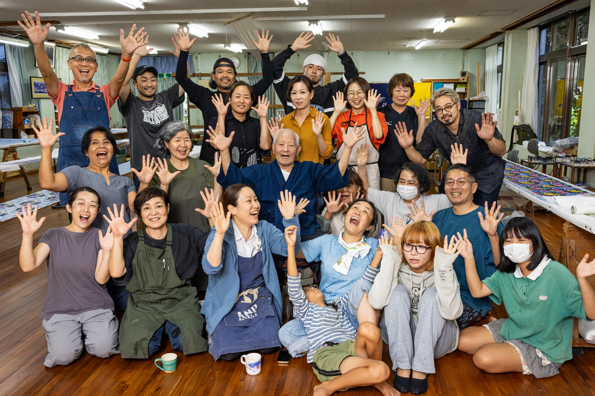 琉球王朝時代から300 年続く城間家。王国の解体、戦争など沖縄の語りつくせない歴史を背景に紅型を新しい時代へ繋いできました。現在、城間家が営む城間びんがた工房では、15代目の城間栄順さんと16代目の城間栄市さん、栄市さんの奥様であるあずきさんをはじめとした職人さんたちが日々ものづくりに向き合っています。
