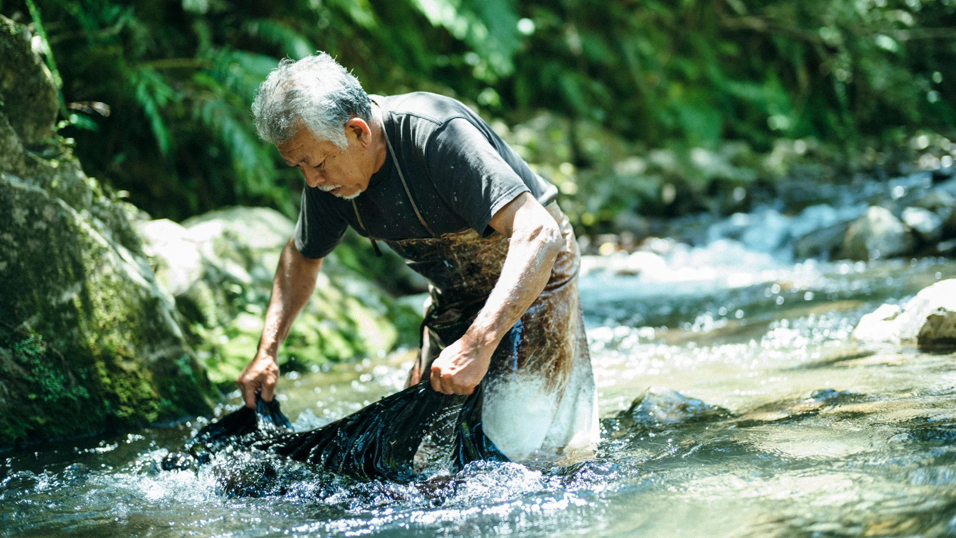 ◎ 大島紬さんち「泥染め実演」 「テーチ木」で下染めした糸を、鹿児島県奄美大島特有の鉄分を含んだ泥で染めていく工程。非常に粒子の細かい泥の感触を体感してみてください。