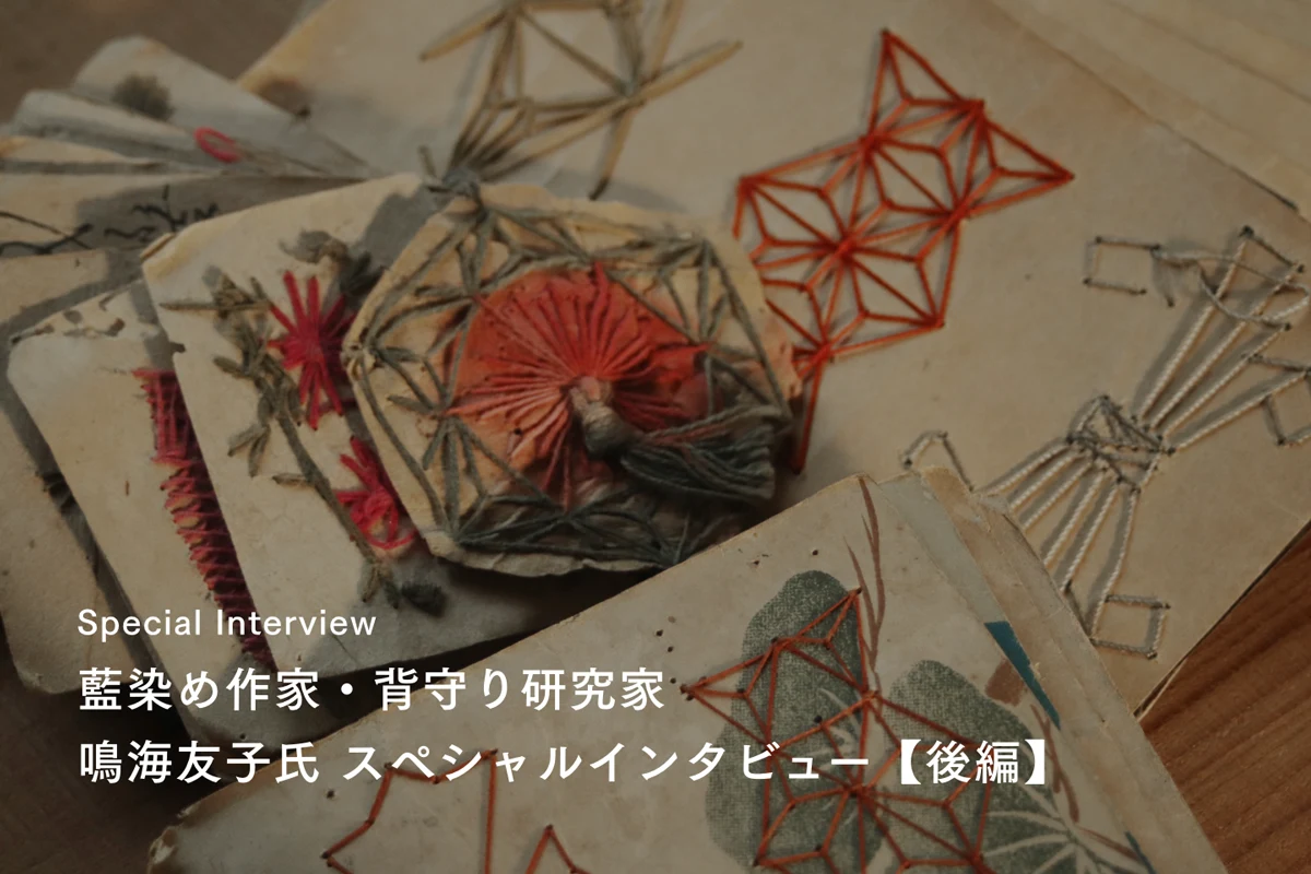 かつて、日本の母親たちが我が子の無病息災を願い、その背中に一針一針祈りを込めた「背守り」。医療も衛生も十分ではなかった時代、目に見えない病魔や災いから子どもを守るため、着物の背に施された小さな魔よけの印は、日本各地に息づく文化でした。そんな背守りの美しさと切実な親心に魅了され、各地を歩いて背守りのついた子どもの着物を収集。誌面や展示会、ワークショップを通じてその魅力を発信し、現在は背守り収集家として知られる藍染作家・鳴海友子さんにお話を伺いました。