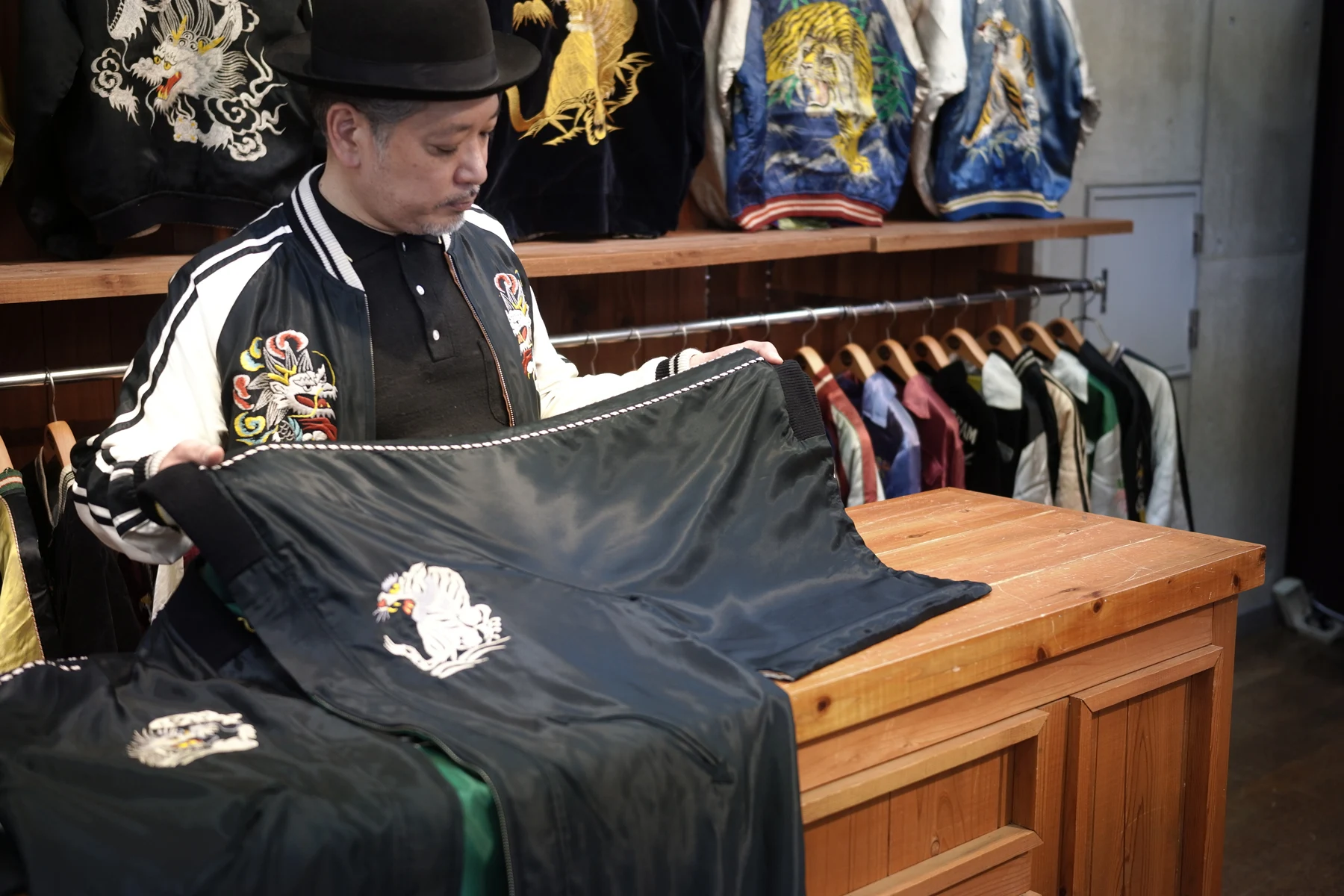 最初の出会いは10代の頃、古着屋でアルバイトを始めた初日。お店の前で掃除していた先輩の背中に、思わず目が釘付けになりました。その先輩が着ていたのは、ヴィンテージのスカジャン。刺繍もデザインも本当に美しくて、まるで雷に打たれたような衝撃を受けたんです。当時は粗悪なスカジャンも多かったのですが、その一着は別格でしたね。それから一気に、スカジャンの世界にのめり込んでいきました。