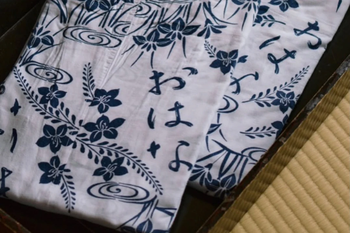 ゆかたに描かれた「おはな」の文字