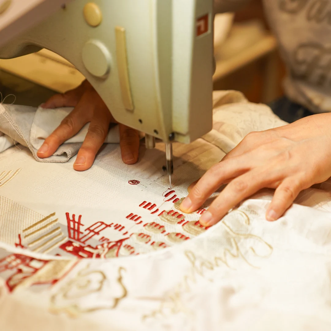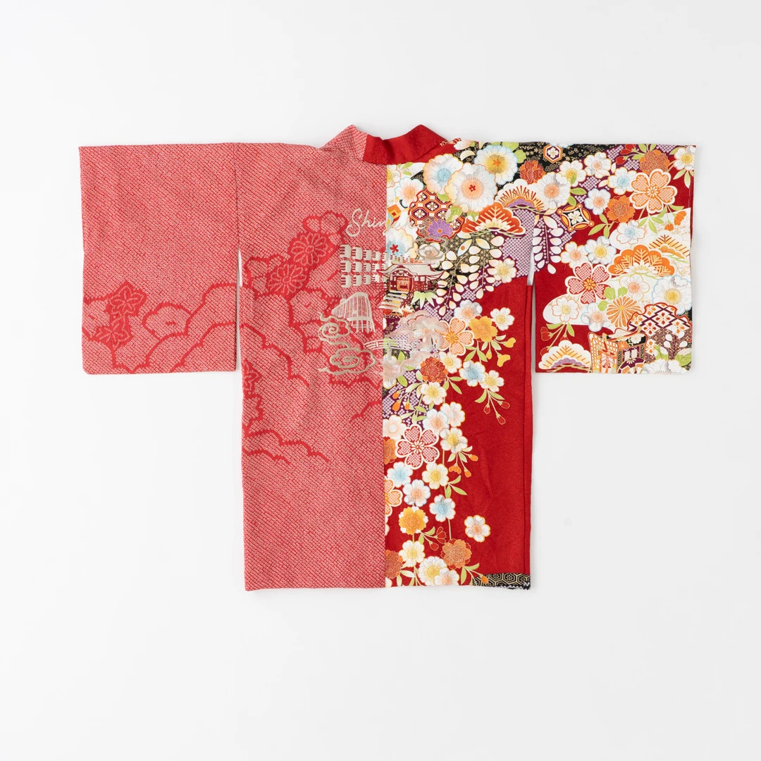 子供の健やかな成長を願い端切れを縫い繋げる「百徳着物」に着想を得て、ヴィンテージキモノをパッチワークのように継ぎ接ぎしたジャケットと、現代では希少な技法を用いたきものから仕立てた羽織やボーリングシャツに、オリジナルの刺繍を施したシリーズ。